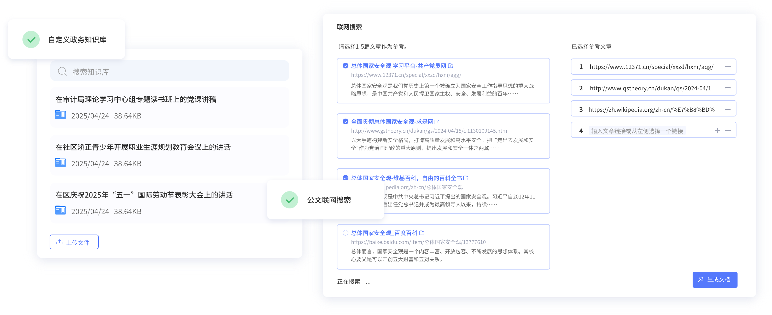 上傳政務或個人寫作常用材料,用于精準生成符合自己寫作風格的公文